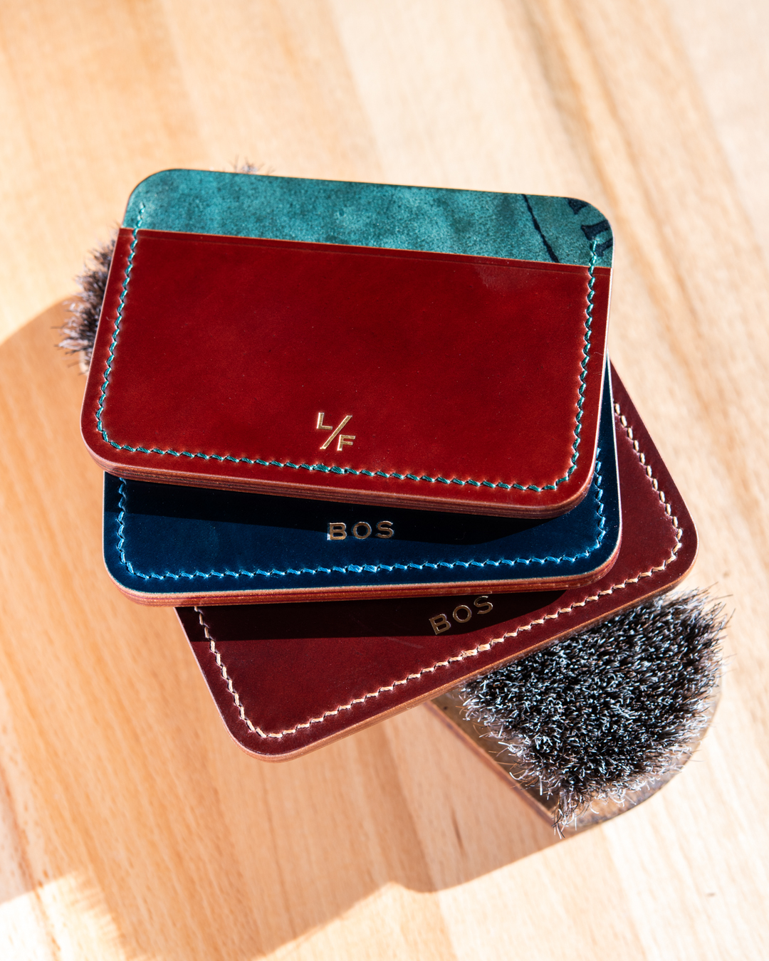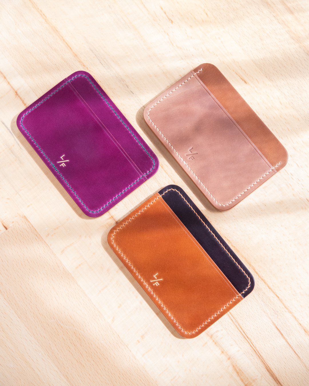 You can learn more about the specific leathers we work with in the Our Leathers page. Want something you don’t see? Contact Us to order your fully custom wallet today.