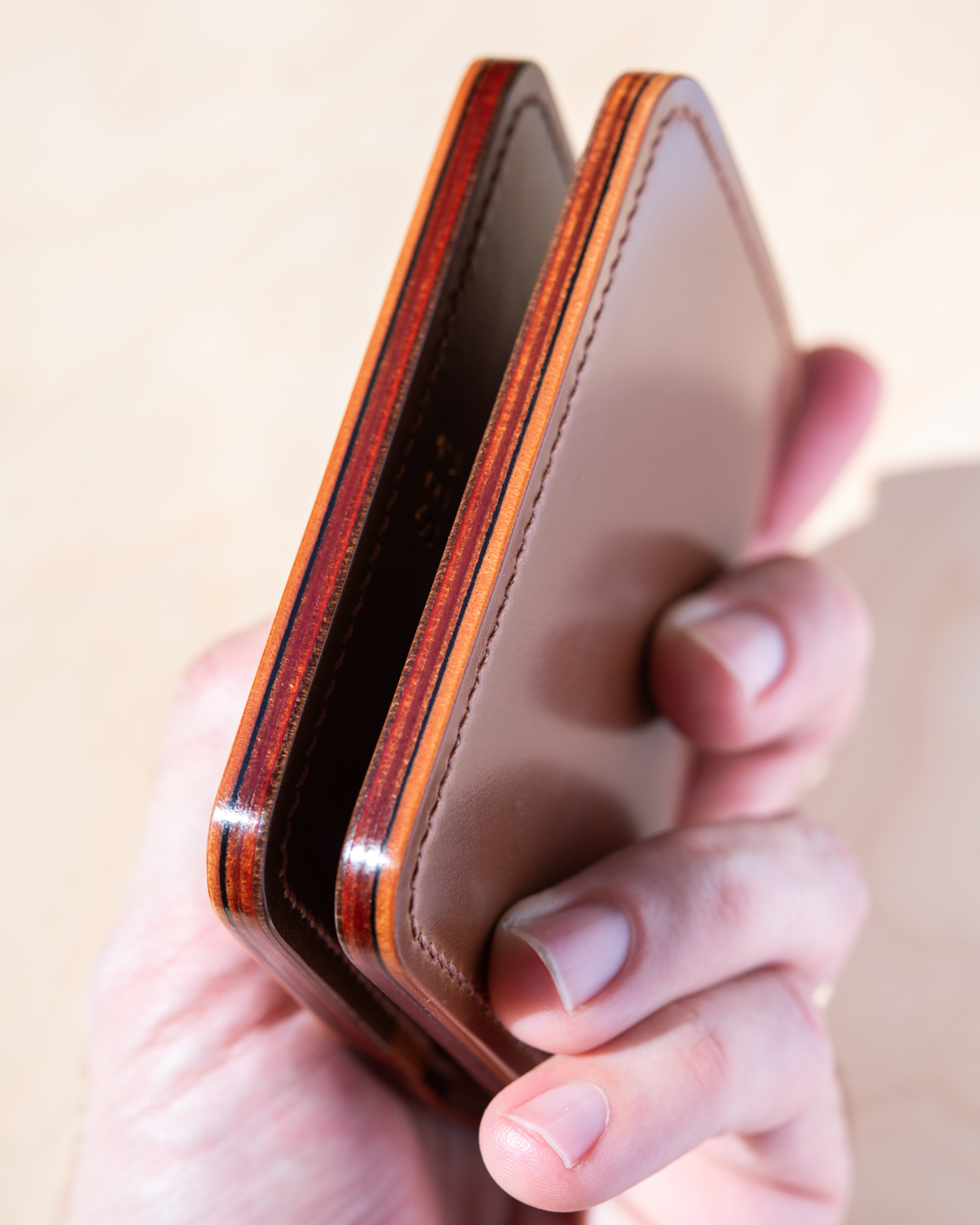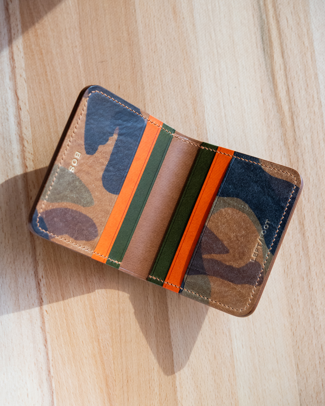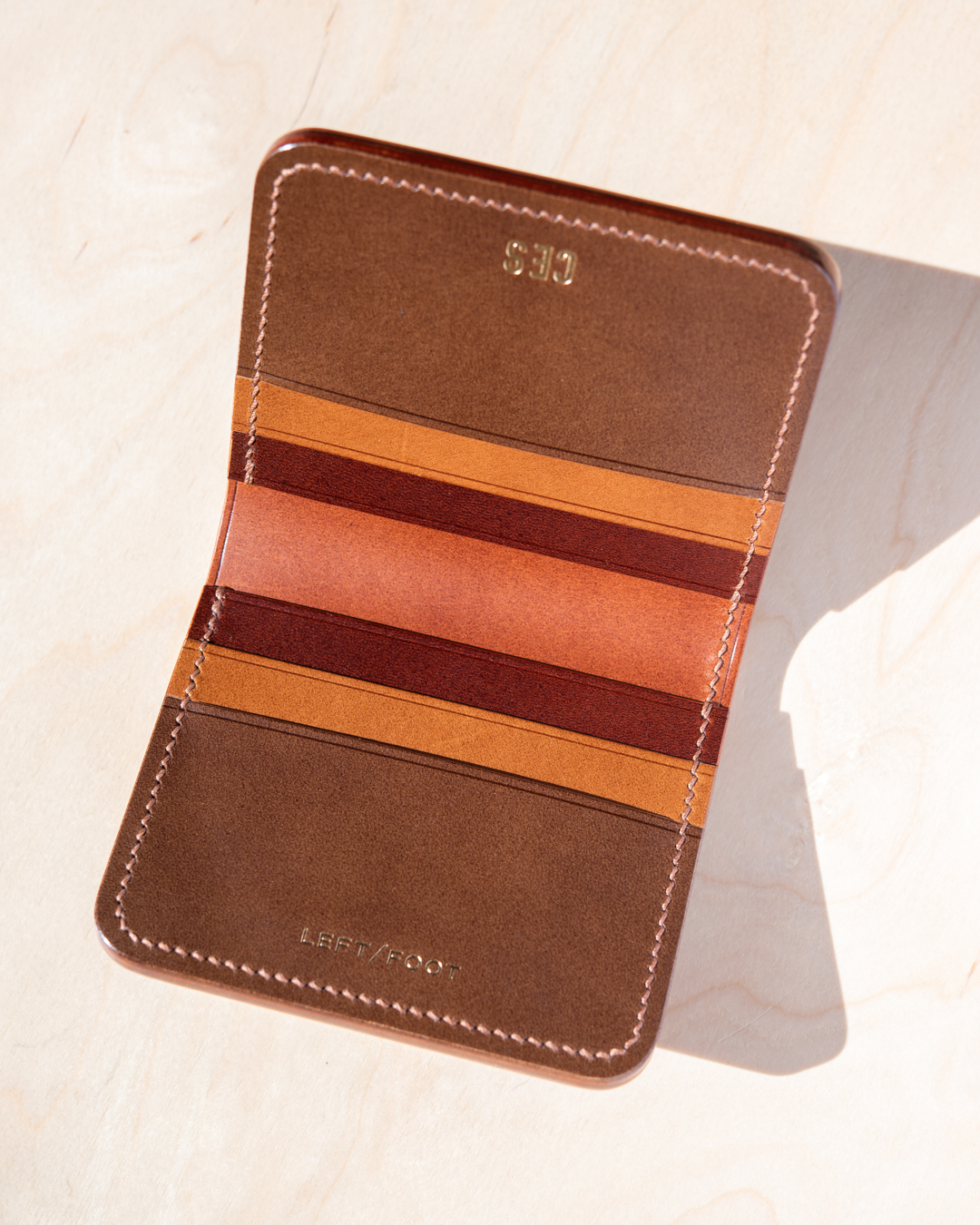 For cowhide, we primarily work with leather from our two favorite Italian tanneries: Conceria Walpier Buttero leather and Badalassi Carlo Minerva. Additionally, we love Pueblo, also by Badalassi Carlo. Our cowhide wallets are lined with a matching, lightly textured leather inside the cash slot. If you’d like to specify lining color, just add it to your order notes.