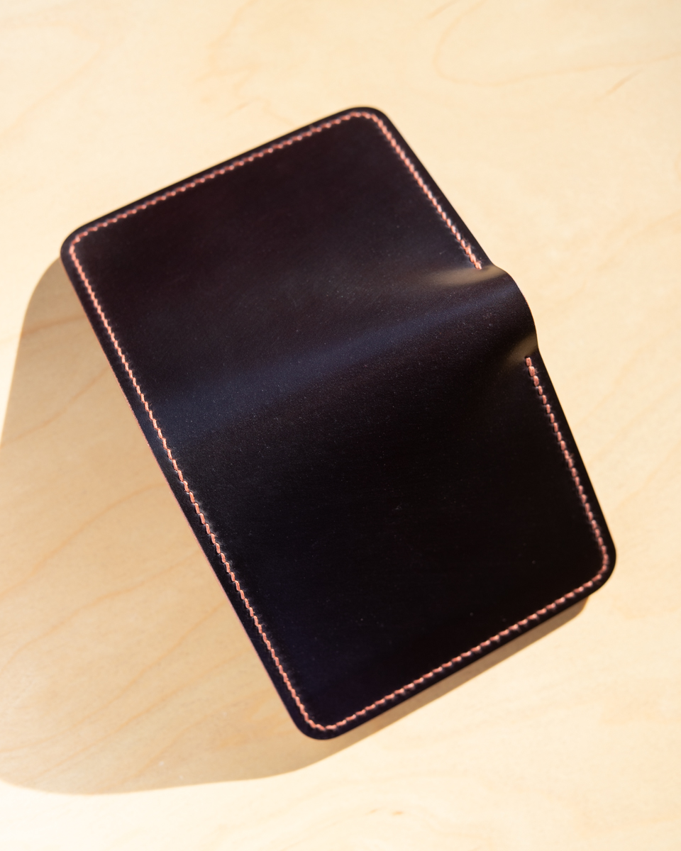 Carefully crafted and beautifully made, this unique handmade Shell Cordovan Compact Bifold is part of our ready-to-ship collection, one of a kind items made by hand in Boston and available for immediate purchase.